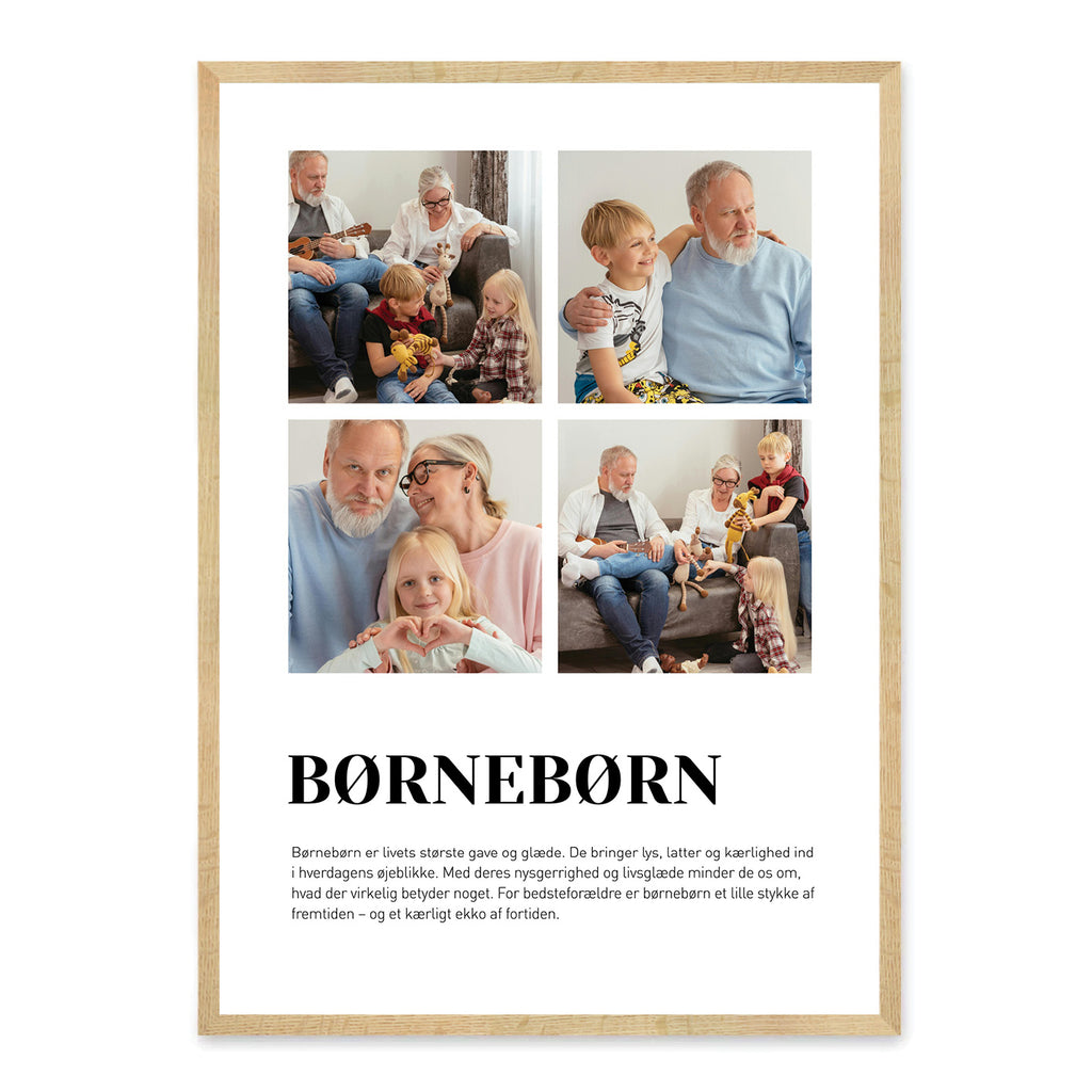 Fejr glæden og kærligheden til børnebørn med denne smukke plakat. Gør den personlig med egne billeder og tekst, så den afspejler jeres særlige bånd og minder, I deler sammen.