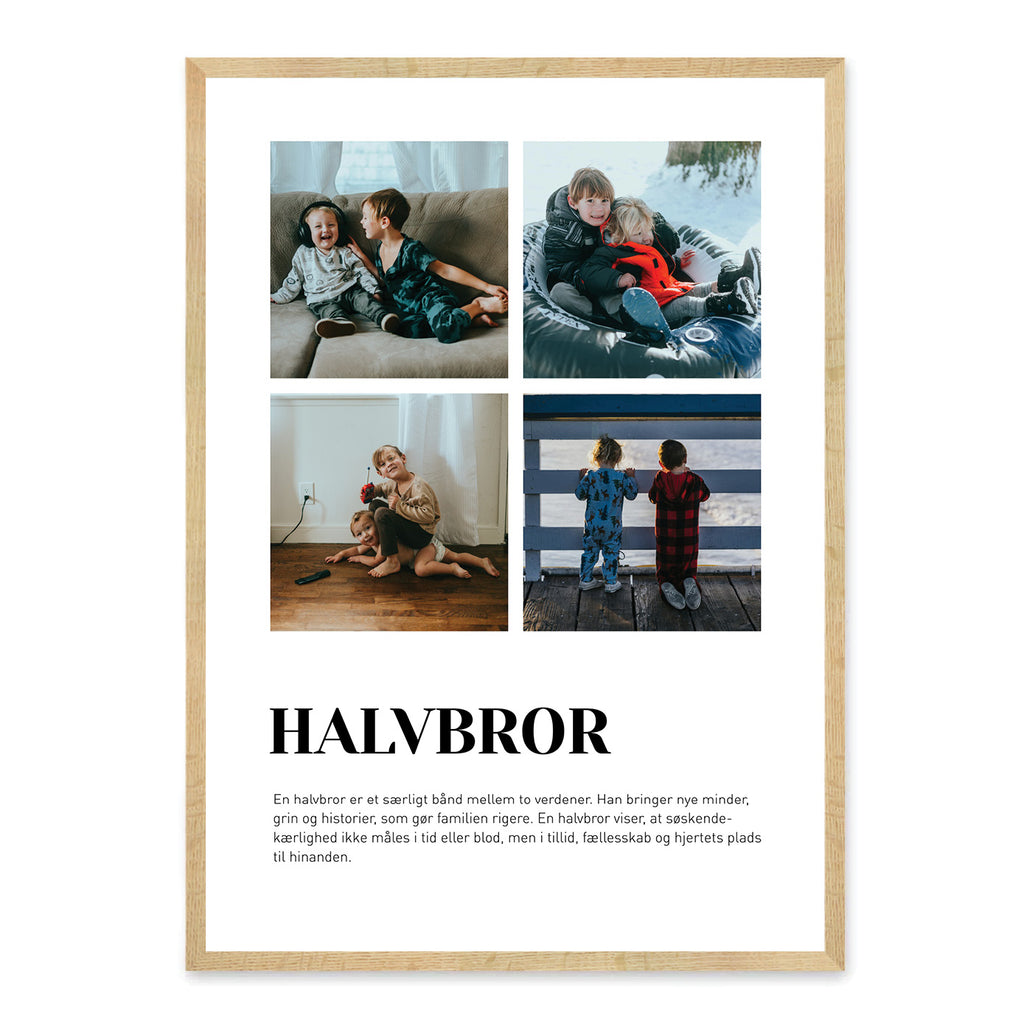 Fejr det særlige bånd til din halvbror med denne smukke plakat. Gør den personlig med egne billeder og tekst, så den afspejler minder, nærvær og de gode stunder, I deler sammen.