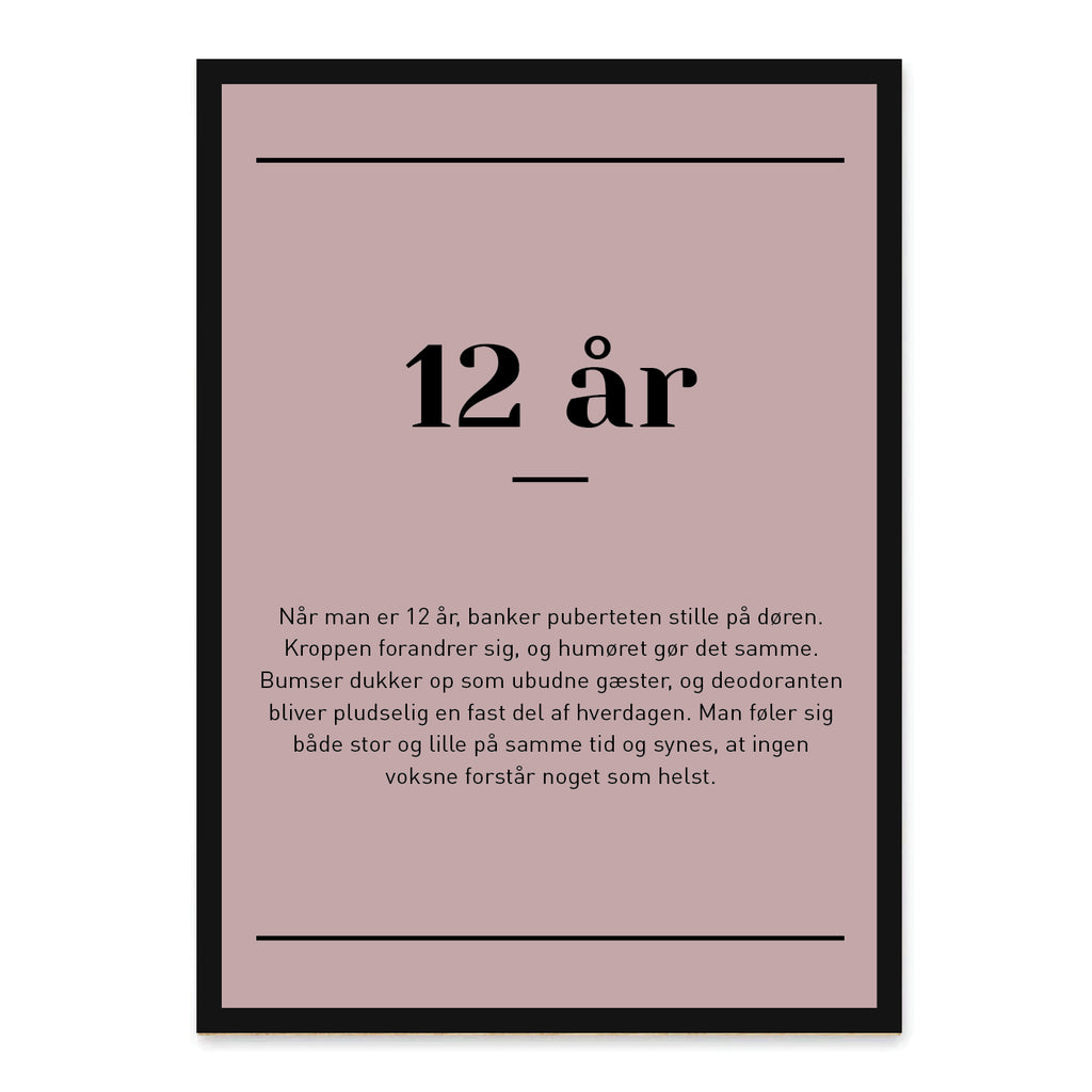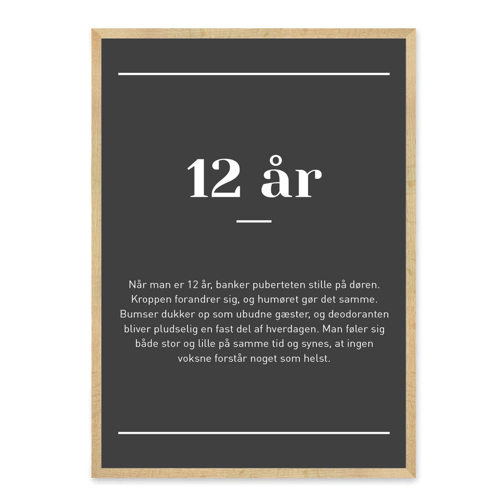 En oplagt gave til 12-års fødselsdagen eller som personlig dekoration på tween-værelset. Med sit enkle og moderne design passer plakaten perfekt ind i ethvert hjem og spreder glæde og genkendelse.