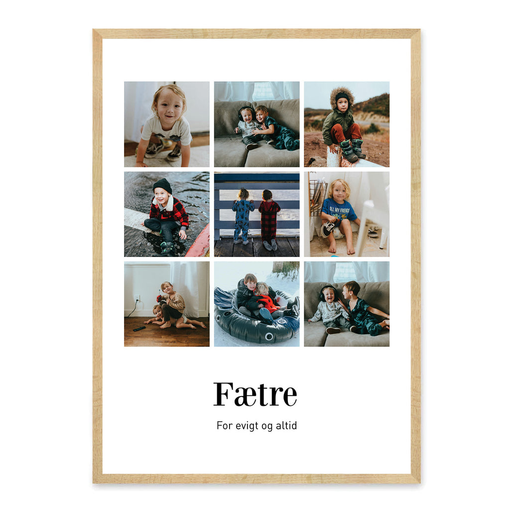 En levende og sjov plakat skabt til fætre, der hylder de minder, I deler, og det særlige bånd, I har med hinanden. Den fanger leg, grin og fælles oplevelser, der gør jeres relation helt unik. Plakaten kan tilpasses med jeres egne 6 eller 9 billeder, en personlig overskrift og tekst, som fortæller jeres historie på en måde, der er helt jeres egen.