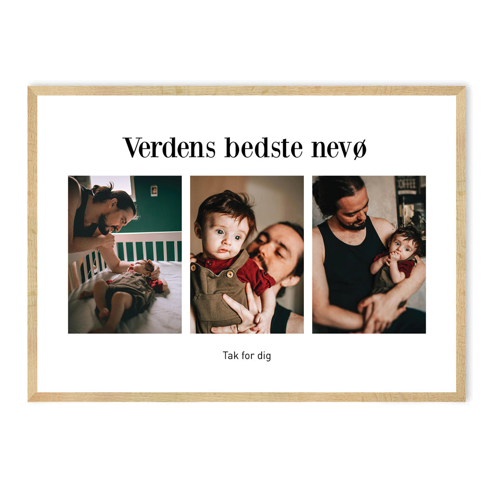 En nevø er som en ekstra søn, og en sjov kammerat. Vis ham hvor meget du holder af ham og hvor glad du er for at være en del af hans liv, med nevø plakaten. Du kan give plakaten til en fødselsdag, en konfirmation eller måske en “bare fordi” gave, for at vise din taknemmelighed over, at have en god, sjov og skøn nevø i dit liv. Plakaten kan gives i forskellige anledninger, om det er til fødselsdag, jul eller måske en "bare fordi" gave.