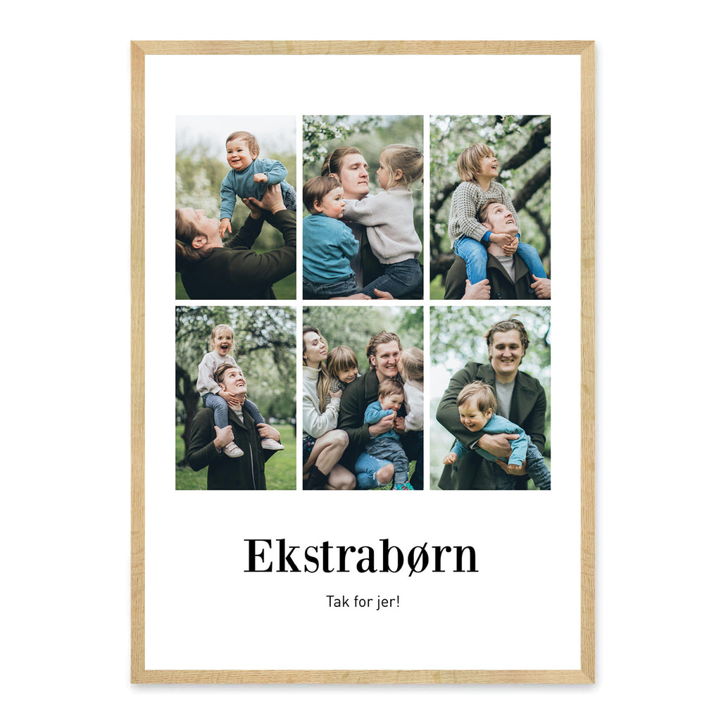 Ekstrabørn beriger livet med nye perspektiver, smil og uforglemmelige oplevelser. Denne plakat hylder de særlige bånd, der opstår, når familier samles på tværs af relationer. Plakaten kan designes med 6 eller 9 billeder, en personlig titel og tekst, så den afspejler jeres unikke historie og fælles minder.
