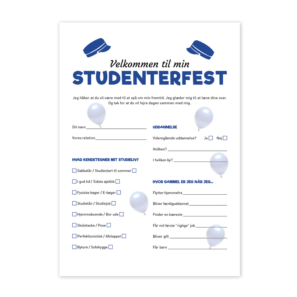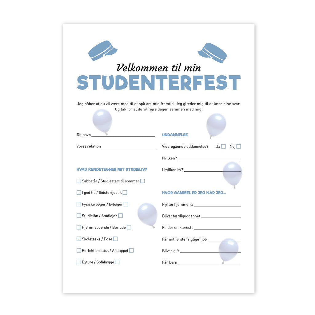 Blå Student Fremtidsquiz - Print selv