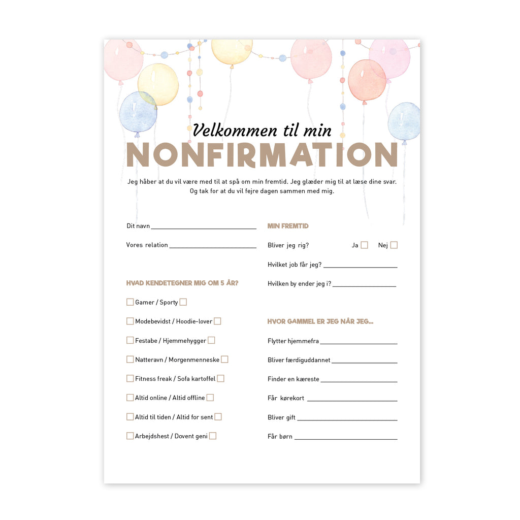 Nonfirmation Fremtidsquiz - Print selv