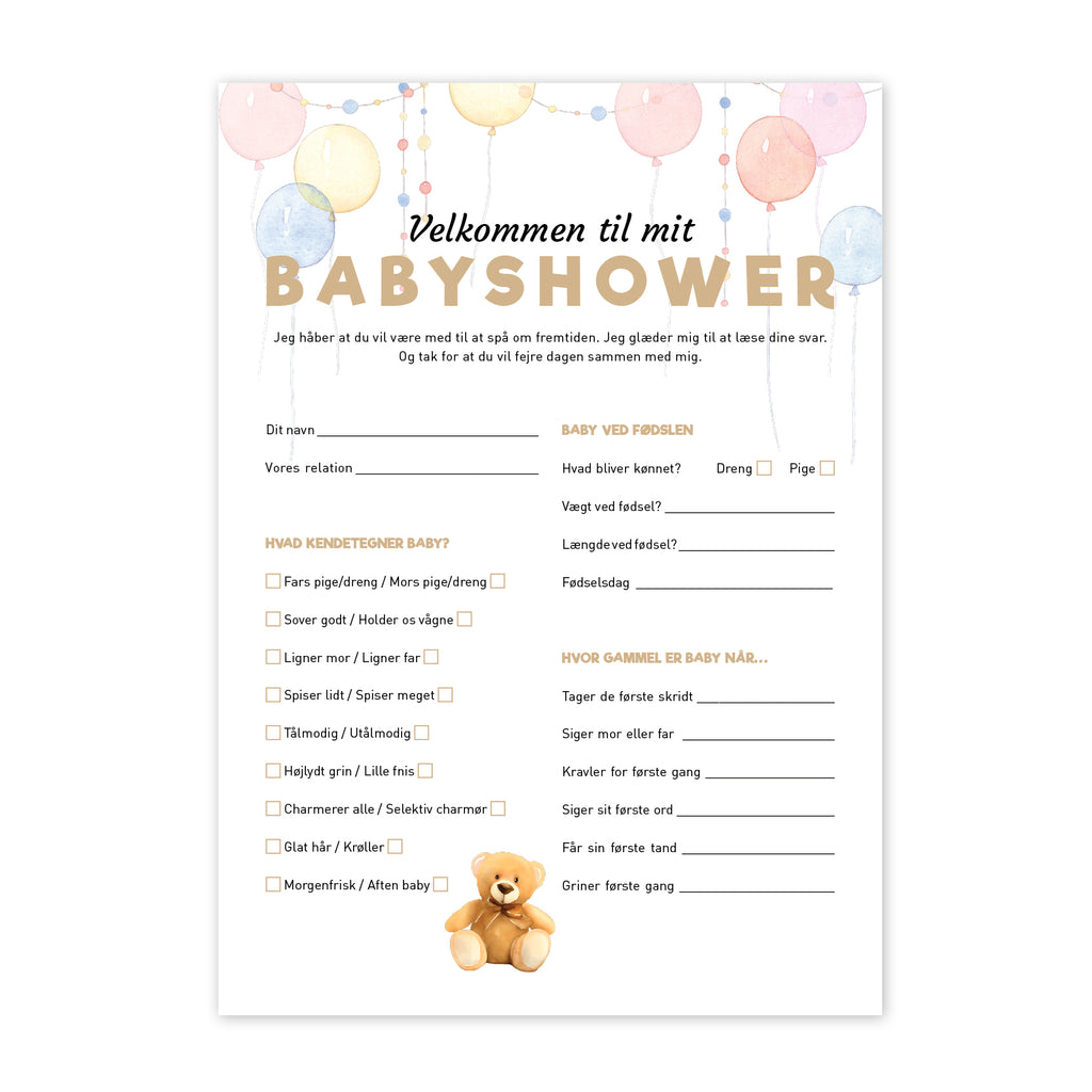 Babyshower Fremtidsquiz - Print selv