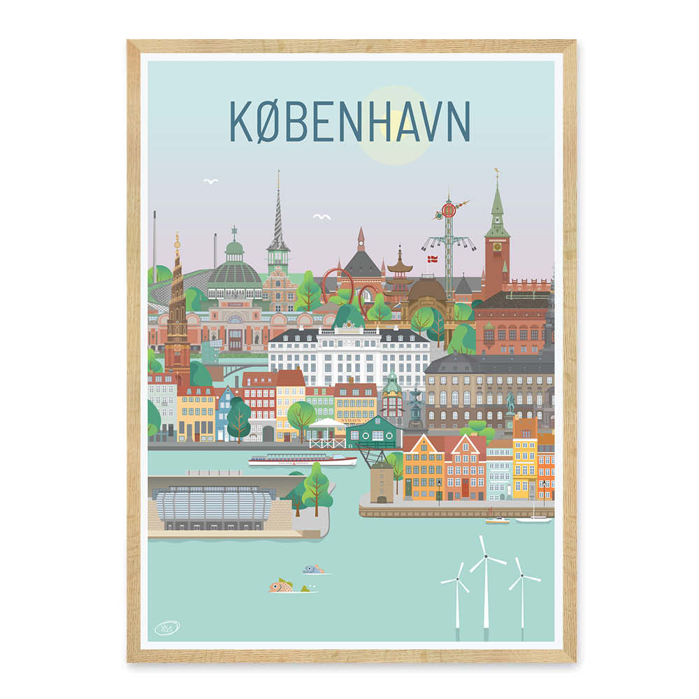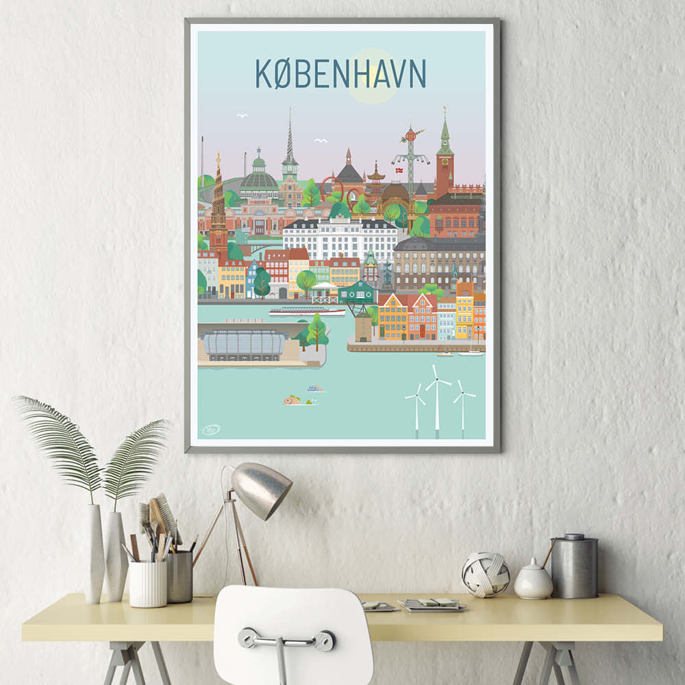 En smuk og detaljeret byplakat udarbejdet af Vilakula med motiv af skønne København. Denne plakat kan sættes sammen med København 2, og give et større billede af København. Her har de fanget byens stemning samt flere af byens flotte bygningsværker. Den smukke København plakat er designet i et farverigt univers der vil pynte smukt på væggene i et hvert hjem, og skaber en kontrast til de sort/hvide hjem.