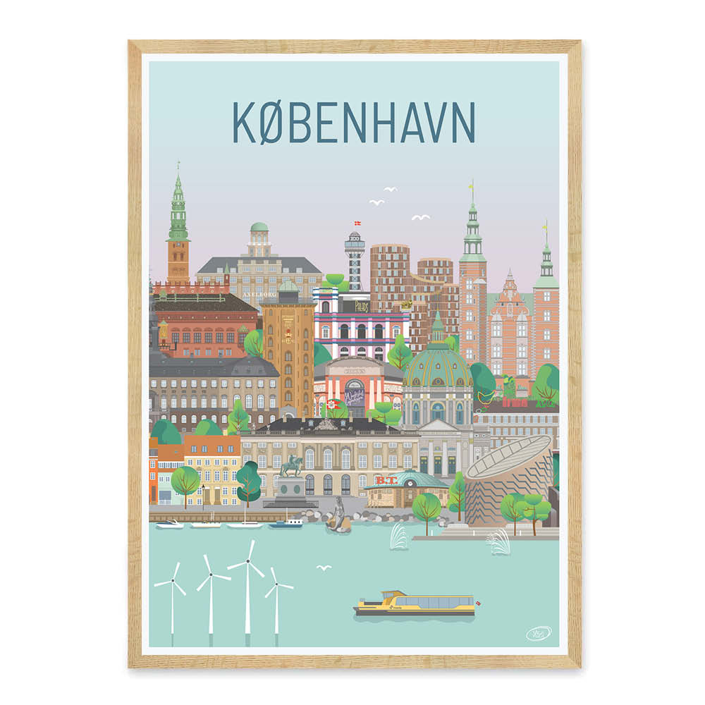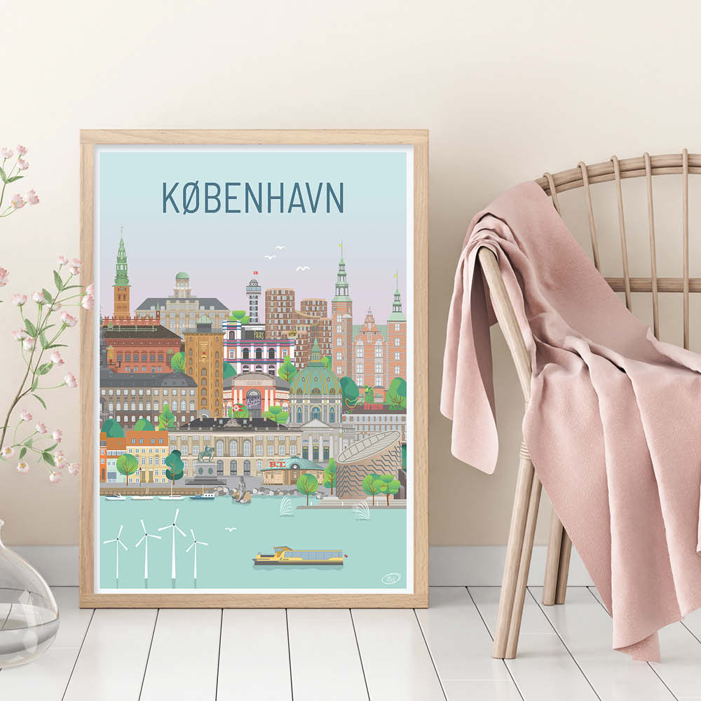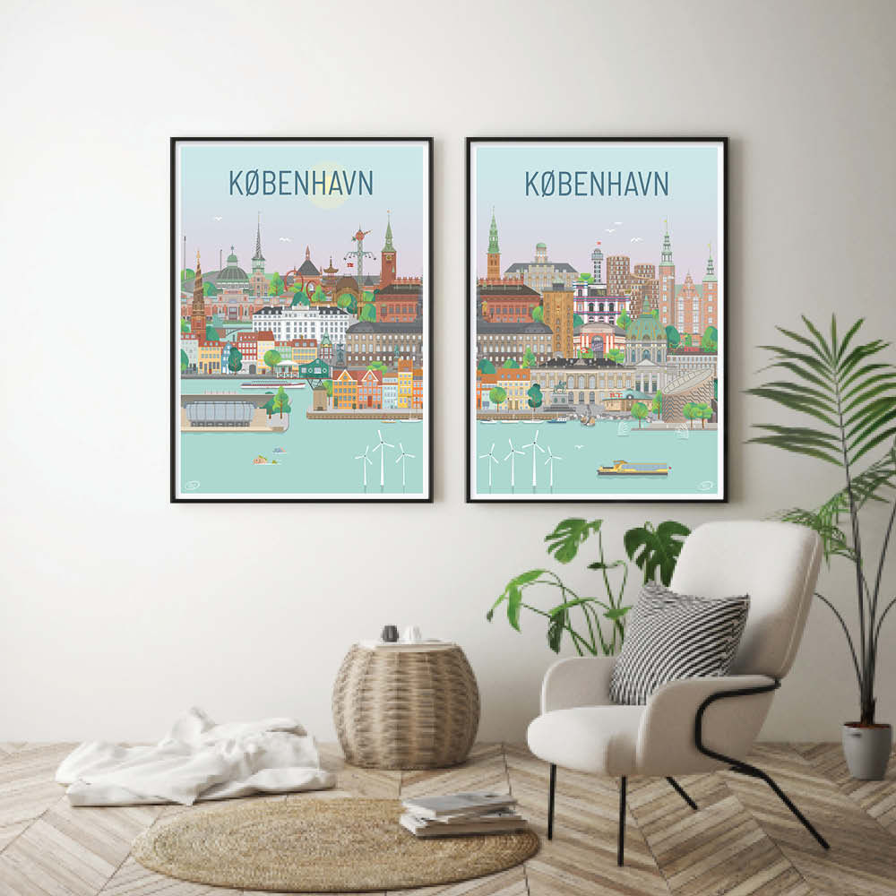 En smuk og detaljeret byplakat udarbejdet af Vilakula med motiv af skønne København. Denne plakat kan sættes sammen med København 1, og give et større billede af København. Her har de fanget byens stemning samt flere af byens flotte bygningsværker. Den smukke København plakat er designet i et farverigt univers der vil pynte smukt på væggene i et hvert hjem, og skaber en kontrast til de sort/hvide hjem.