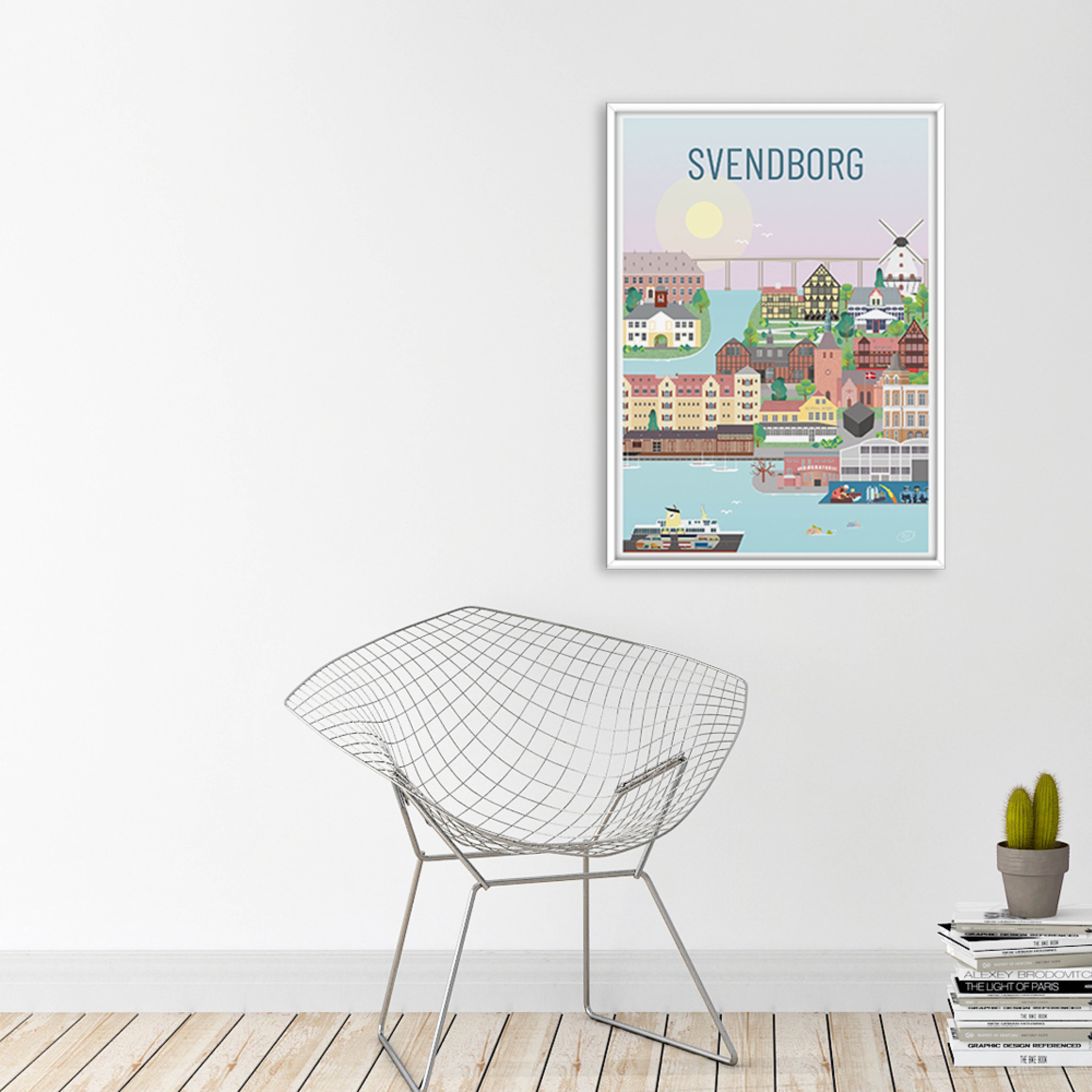 En smuk og detaljeret byplakat udarbejdet af Vilakula med motiv af skønne Svendborg. Her har de fanget byens stemning samt flere af byens flotte bygningsværker. Den smukke Svendborg plakat er designet i et farverigt univers der vil pynte smukt på væggene i ethvert hjem, og skaber en kontrast til de sort/hvide hjem.