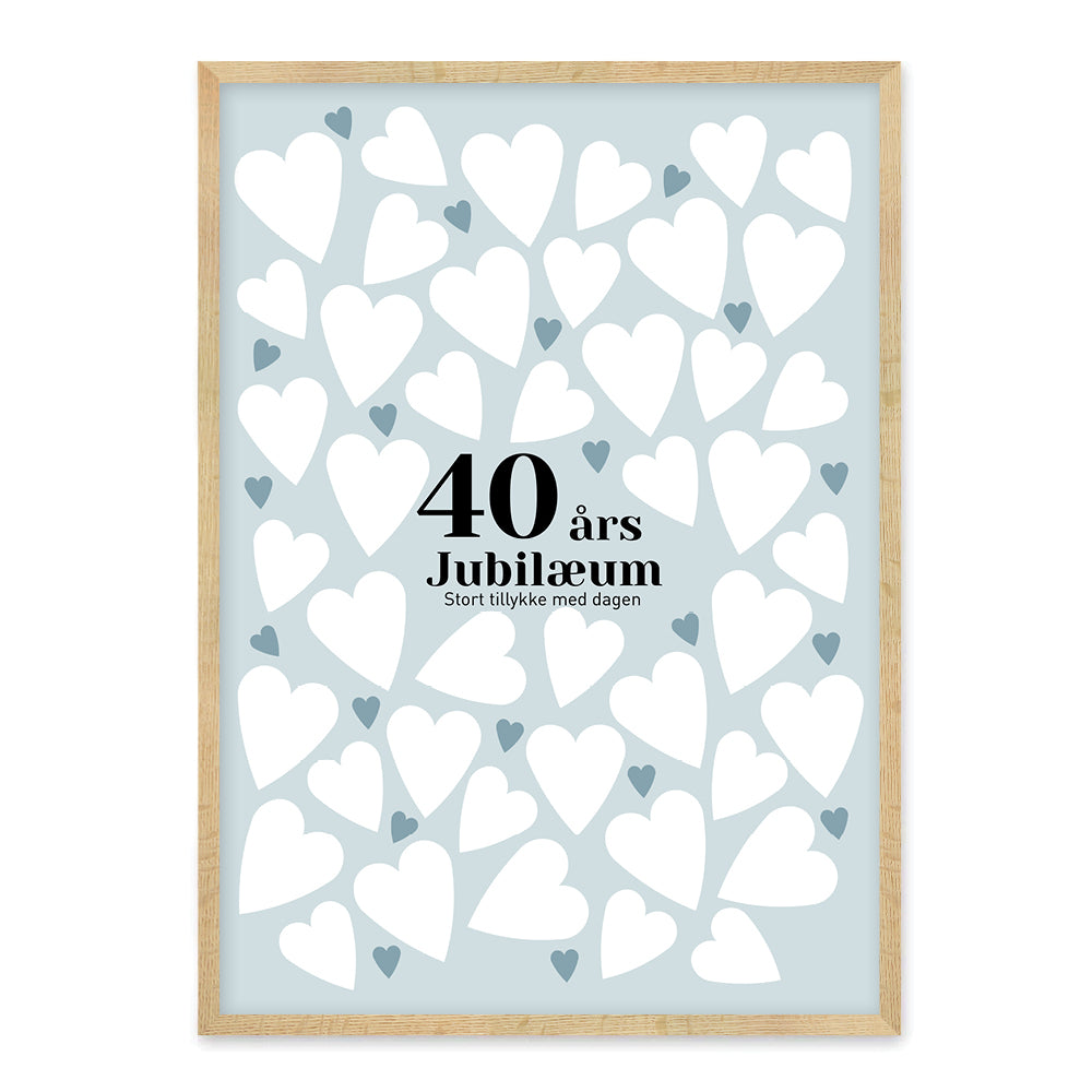 Et kvart århundrede er noget ganske særligt! Med en 25 års jubilæums plakat får du en personlig gæsteplakat med hjerter, som kan tilpasses i farver og antal. Skriv din egen hilsen og gør den til en gave, der varer ved – perfekt til sølvjubilæer, medarbejderfejring eller private anledninger.