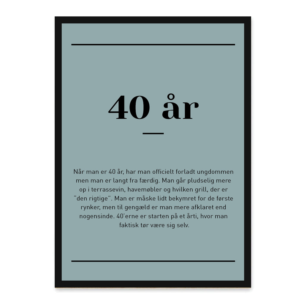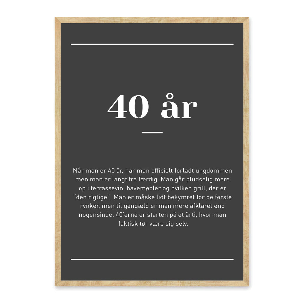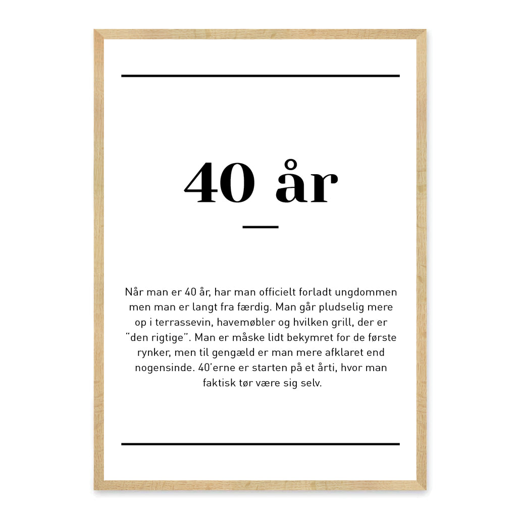 En oplagt gave til 40-års fødselsdagen – både sjov, personlig og stilren. Plakaten passer perfekt ind i hjemmet og vækker smil, grin og genkendelse hos både gæster og fødselaren selv.