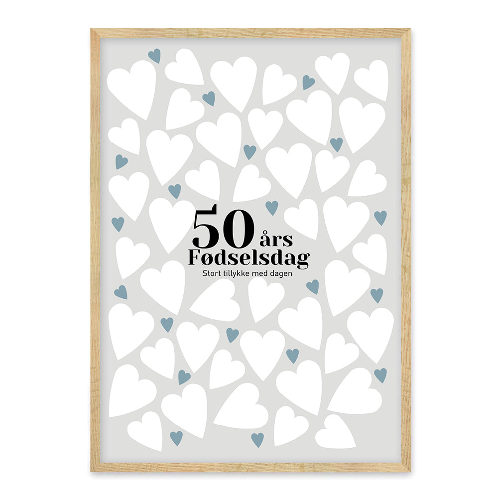 40 års fødselsdag er et vigtigt jubilæum, hvor livet fejres med både familie og venner. Med en gæsteplakat bliver festen endnu mere mindeværdig. Gæsterne kan skrive hilsner, ønsker eller små citater i hjerterne, og du vælger selv farver og antal. Tilføj en personlig tekst, og skab en plakat, der vil pynte i hjemmet og minde fødselaren om dagen i mange år fremover.