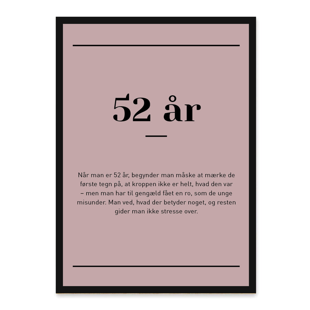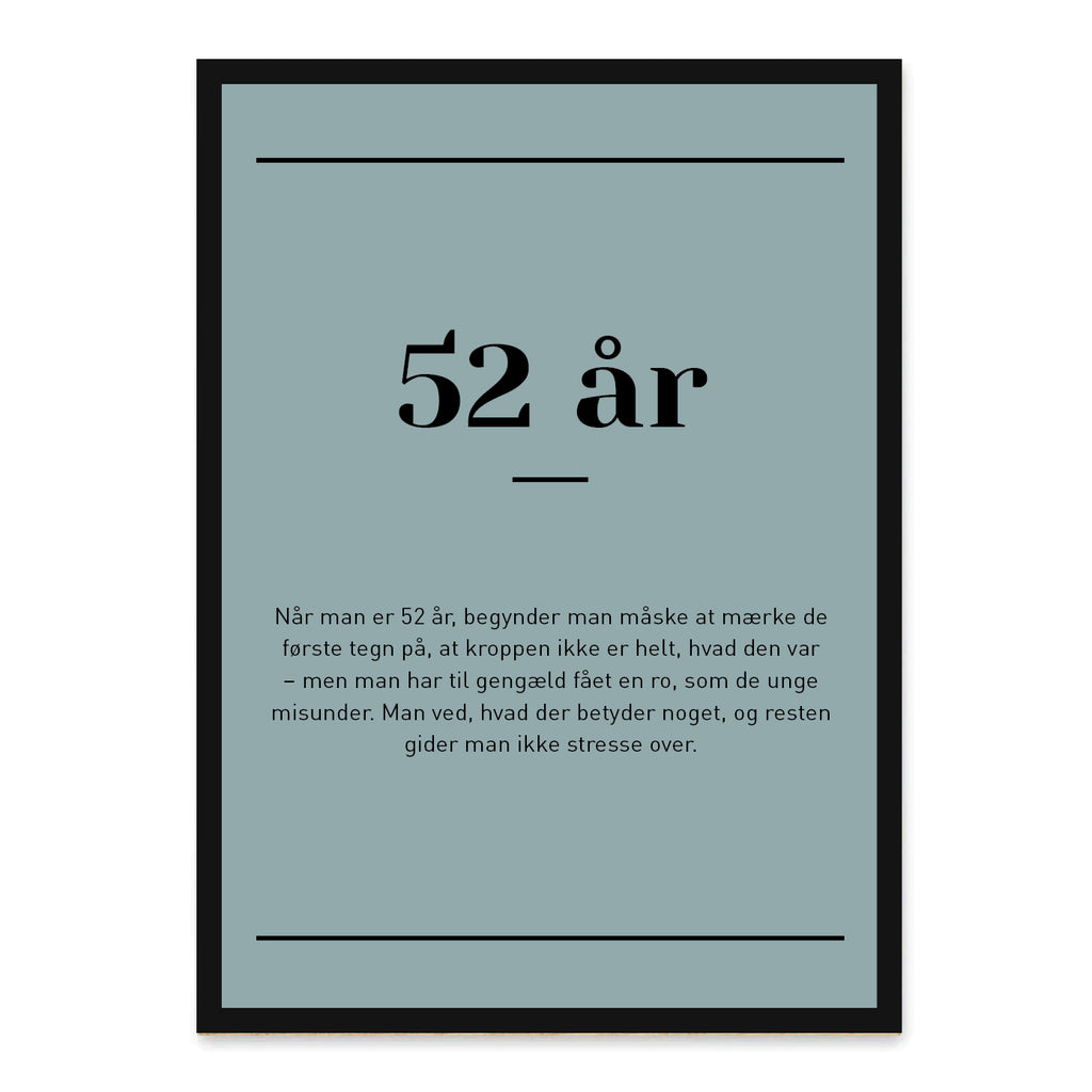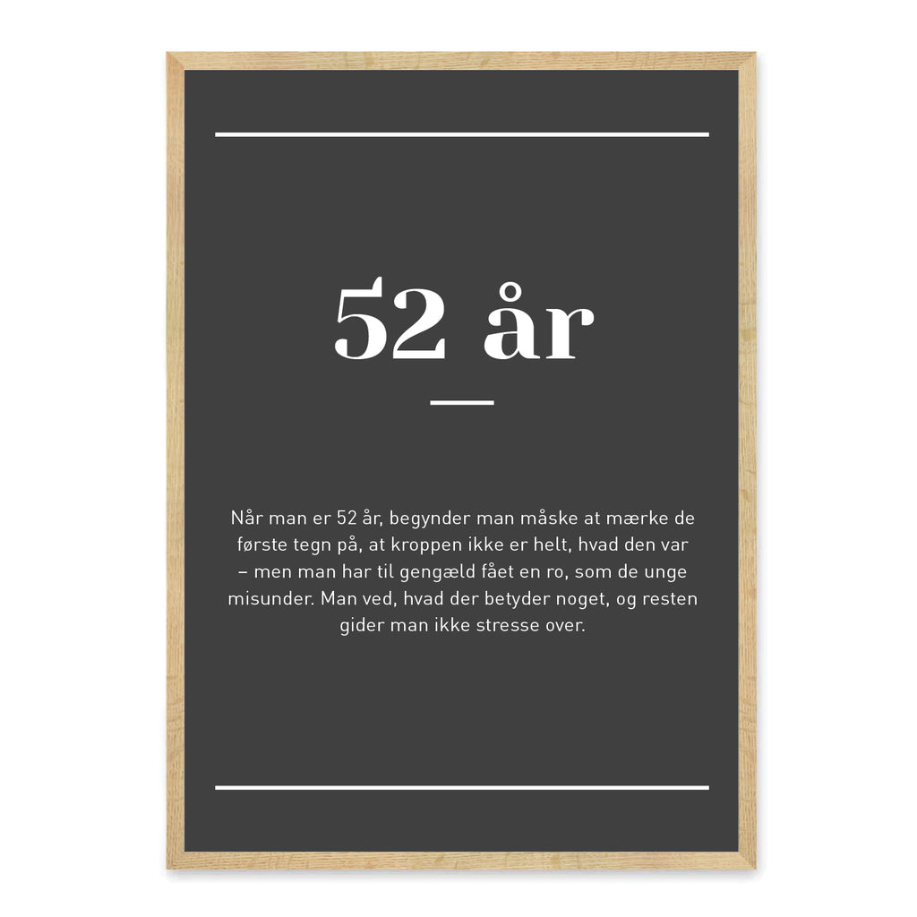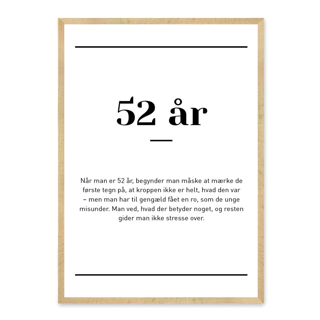 En perfekt gave til 52-års fødselsdagen eller som personlig dekoration i hjemmet. Det enkle og stilrene design passer ind i alle rum og spreder genkendelse og glæde.