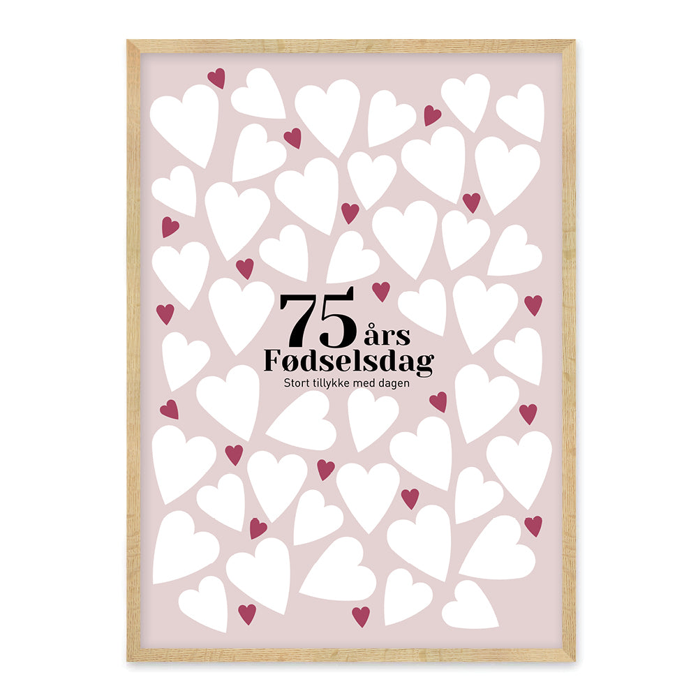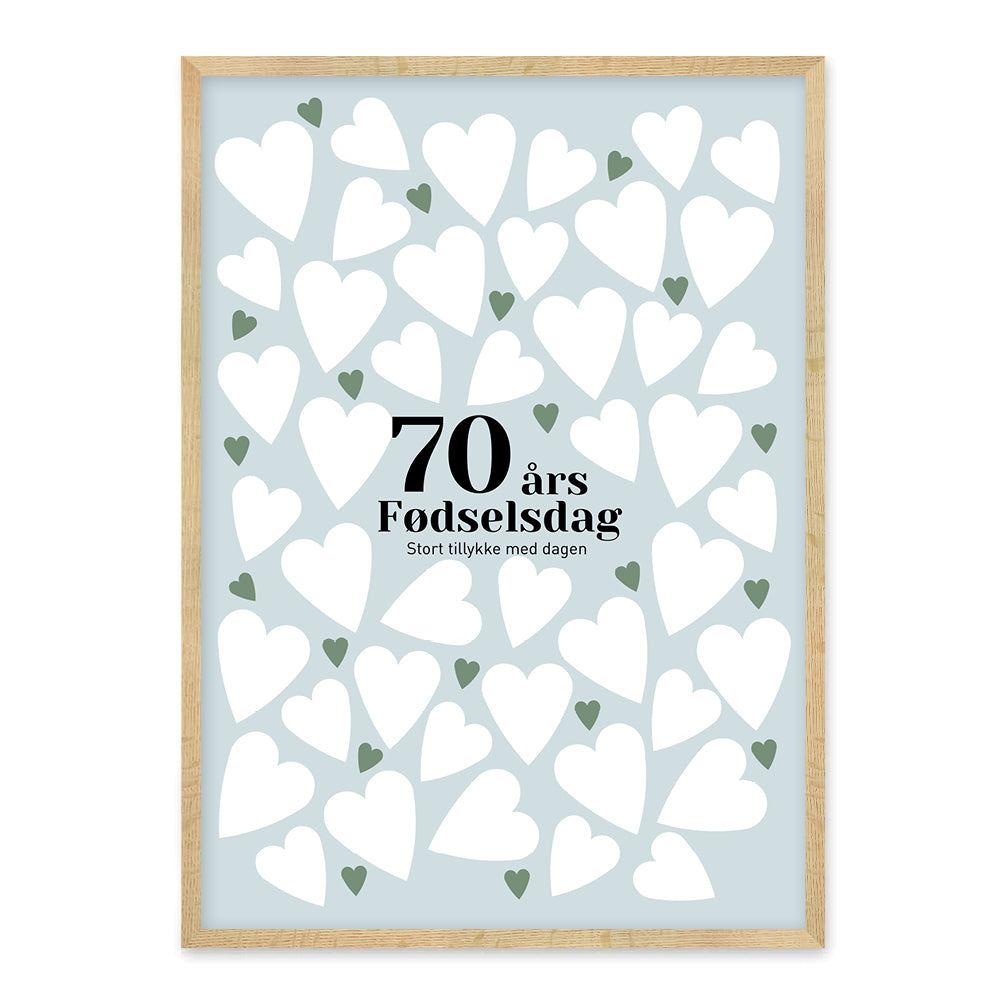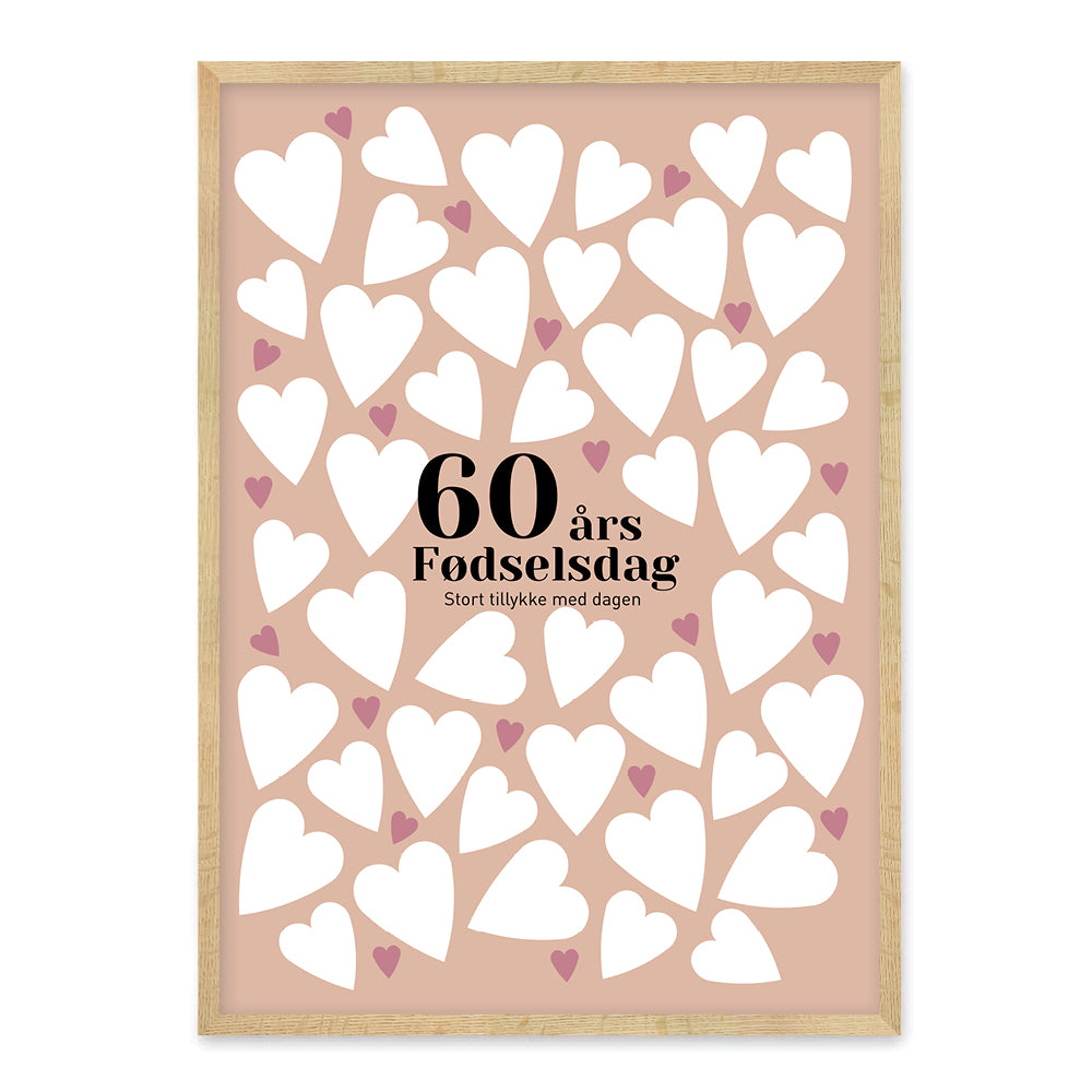 Når man fylder 60 år, er det en anledning til at fejre livets erfaringer, glæder og relationer. Med en gæsteplakat kan gæsterne bidrage med personlige hilsner i hjerterne, så plakaten bliver et unikt minde om dagen. Du kan selv vælge farver, antal hjerter og skrive en personlig tekst. En oplagt gave til at markere en rund fødselsdag på en kreativ og varig måde.
