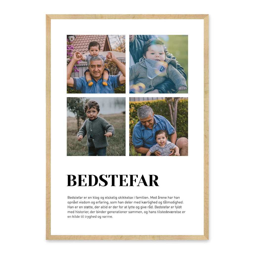 Fejr kærligheden og det særlige bånd til din bedstefar med denne smukke plakat. Gør den personlig med egne billeder og tekst, så den afspejler minder, nærvær og glæde, I deler sammen.