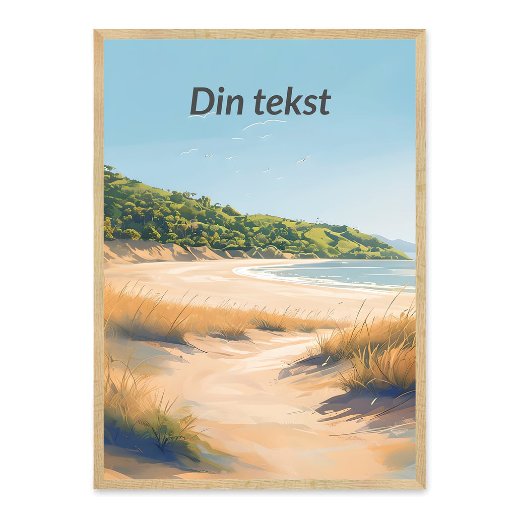 Tilføj et navn, et inspirerende citat eller en særlig dato, og skab en unik plakat, der indfanger roen ved stranden og sommerens varme. Perfekt til stuen, sommerhuset eller som gave til alle, der elsker havet og naturen.