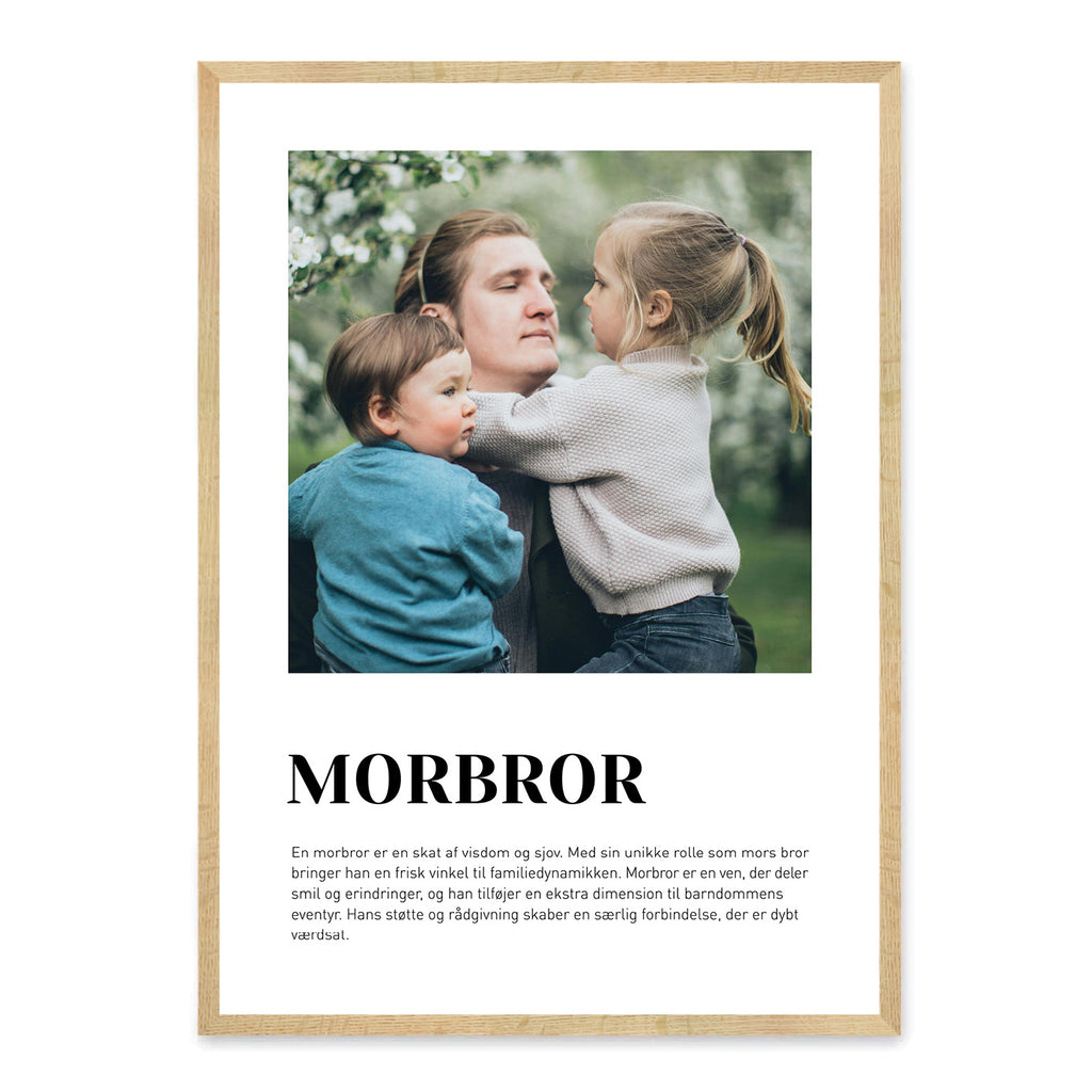 En Morbror-plakat er en kærlig måde at hylde den helt særlige relation, du har til din morbror – uanset om I har delt barndommens eventyr eller først har lært hinanden at kende senere i livet. Den indfanger de minder, grin og små øjeblikke, der gør jeres familieforhold unikt. Plakaten er en smuk måde at vise, hvor meget han betyder for dig, og hvilken vigtig rolle han spiller i dit liv.