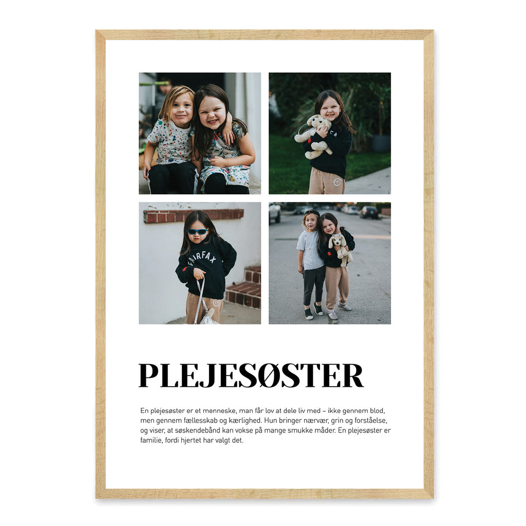 Tilføj egne ord eller vælg en af vores færdige tekster, og brug ét eller fire billeder for at gøre plakaten helt unik. En kærlig gave, der varmer hjertet – perfekt til fødselsdag, jul eller som en overraskelse, der skaber smil og gode minder.