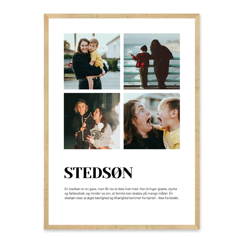En Stedsøn-plakat er en kærlig hyldest til det særlige bånd, der vokser, når kærlighed vælger familie. Den minder os om, at relationer ikke behøver at være født af blod for at være ægte – de skabes gennem tillid, nærvær og hjerte.